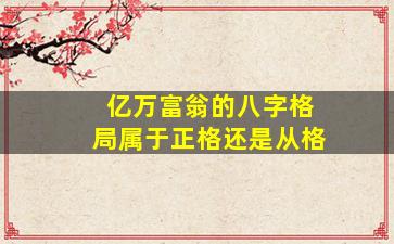 关于亿万富翁的八字格局是否属于正格(扶抑格)或从格(从弱格、从强格等),在命理学中并无绝对定论,因为财富的成就与八字格局类型并无直接对应关系,而是取决于命局整体组合、五行流通、用神得力以及大运配合等多重因素。以下从专业角度分析: