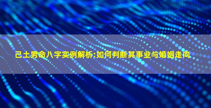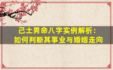 在八字命理中,己土为阴土,代表田园之土,性格温和包容,但具体运势需结合八字整体格局、五行生克、十神配置等综合分析。以下通过一个假设的八字案例,解析己土男命的事业与婚姻走向,并提供判断思路: