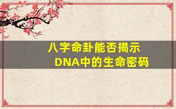 关于“八字命卦能否揭示DNA中的生命密码”这一问题,需要从科学和传统文化的角度进行理性分析: