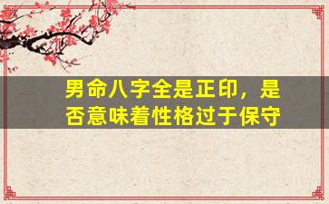 在八字命理中,正印确实与保守、稳重、依赖心强等特质相关,但仅凭“八字全是正印”这一单一条件,并不能直接断定性格必然过于保守。需结合以下因素综合判断: