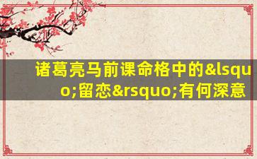 关于诸葛亮《马前课》命格中“留恋”的深意,需结合传统文化中的命理思想和诸葛亮的特殊历史背景来理解。以下是几种可能的解读方向:
