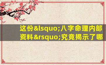 关于所谓“八字命理内部资料”的“秘密”,需要从传统文化、科学逻辑和商业宣传三个角度理性分析: