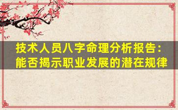 关于技术人员八字命理分析与职业发展潜在规律的探讨,可以从传统命理学与现代职业规划的交叉视角进行解析。以下为一份结构化分析报告框架,供参考: