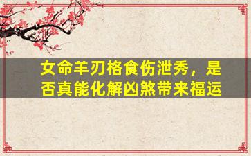 在八字命理中,关于“女命羊刃格食伤泄秀”能否化解凶煞带来福运的问题,需结合具体命局综合分析。以下是专业角度的解读: