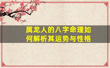 解析属龙人的八字命理需结合年柱(生肖)、月柱(季节)、日柱(主星)和时柱(时辰),综合五行生克、十神配置及大运流年等因素。以下是具体分析框架: