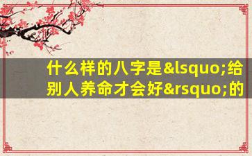 在八字命理中,"给别人养命才会好"的命格通常与特殊格局或五行配置相关,其核心逻辑是命主需通过奉献、付出或辅助他人来平衡自身能量,从而获得福报或运势提升。以下是几种典型特征和格局: