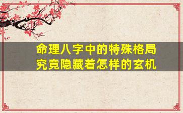 命理八字中的特殊格局,是传统命理学对某些特定五行组合的归纳,其背后蕴含着古人对命运规律的探索与象征性解读。这些格局之所以被视为"特殊",是因为它们突破了常规的旺衰平衡理论,通过独特的结构揭示命主潜在的命运轨迹。以下从不同维度解析其玄机: