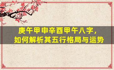 年柱庚午:天干庚(金),地支午(火藏丁火、己土)