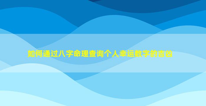 通过八字命理查询个人幸运数字的吉凶,需要结合五行生克、喜用神以及数字的五行属性来分析。以下是具体步骤和方法: