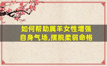 帮助属羊女性增强气场、摆脱传统观念中的"柔弱命格",需要从内在心态调整和外在形象塑造两方面入手。属相只是传统文化的一部分,真正的气场源于个人特质和行动力。以下是一些具体建议: