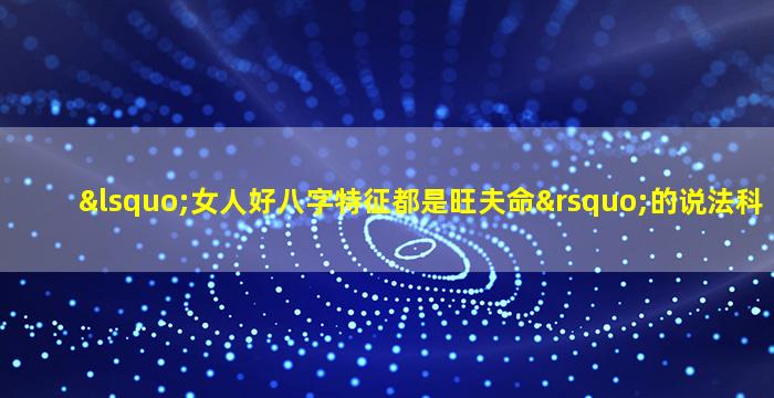 关于“女人好八字特征都是旺夫命”这一说法,是否科学可以从以下几个角度分析: