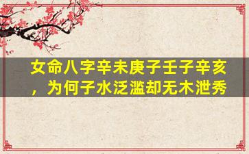 亥中甲木被辛金盖头压制,且亥子水势过旺,水多木漂,甲木难以发挥作用。