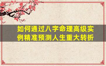 通过八字命理(四柱预测学)精准预测人生重大转折,需要深入掌握命理核心逻辑并结合实际案例进行综合分析。以下是高级预测的步骤与实例解析:
