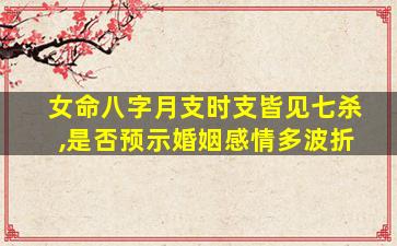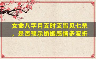 在八字命理中,女命月支、时支皆见七杀确实可能对婚姻感情产生一定影响,但需结合全局综合分析,不可一概而论。以下是具体解析: