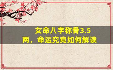 根据中国传统命理学中的“称骨算命”法,女命3.5两的骨重属于中等偏下的范畴,其命运解读需结合命理学的逻辑框架和现实生活的灵活性来分析。以下是具体解读方向和建议: