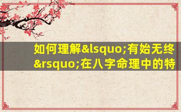 在八字命理中,“有始无终”是一个特殊术语,通常用来描述某种命局特征或人生轨迹的象征性表达。其含义需结合命理学的核心理论(如五行生克、十神关系、大运流年等)来深入理解。以下是分层次的解析: