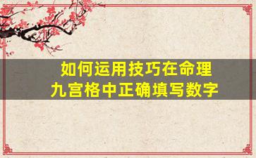 在命理九宫格(如洛书九宫、数独或风水中的九宫飞星)中正确填写数字需要遵循特定的规则和技巧,具体方法因用途不同而异。以下是几种常见场景的填写技巧: