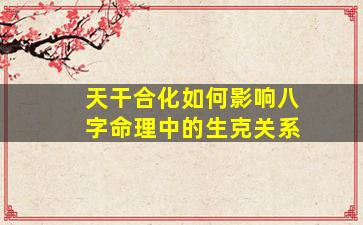 在八字命理中,天干合化是影响五行生克关系的重要因素之一,它通过改变天干的五行属性,进而影响命局中的能量流动和平衡。以下是天干合化对生克关系的具体影响及逻辑分析: