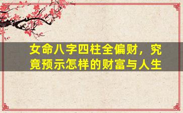 四柱全偏财的女命并非绝对吉凶,关键在于五行平衡与格局配合。此类命局者往往人生起伏较大,需培养财商与风险意识,方能将偏财的机遇转化为真正的富足。建议结合大运流年具体分析,以动态视角规划财务与人生选择。