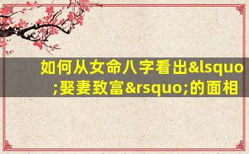 在八字命理中,通过女命八字推断其配偶(男命)是否有“娶妻致富”的潜在特征,主要需分析女命八字中与配偶相关的宫位、十神组合及五行生克关系。以下是具体的分析思路和方法:
