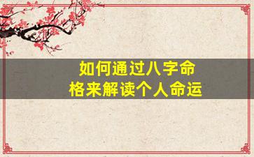 通过八字命格(四柱命理)解读个人命运是中国传统命理学的核心方法之一,基于出生年、月、日、时的天干地支(共八个字)分析五行生克、十神关系等,推测人生轨迹。以下是系统的解读步骤和逻辑框架: