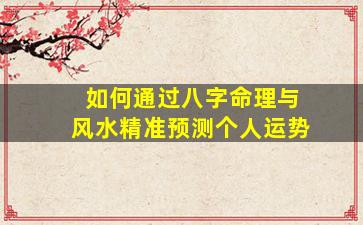 通过八字命理与风水预测个人运势,是中国传统文化中的一种综合分析方法,强调“天人合一”与“时空能量”的相互作用。以下是系统化的步骤和关键要点: