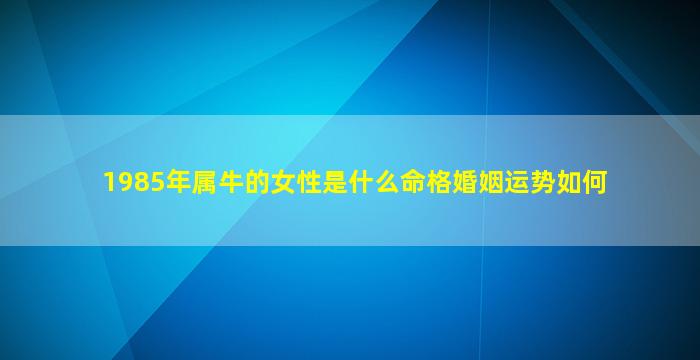 根据中国传统命理学,1985年出生的女性属牛,对应的农历年份为乙丑年,天干为乙(属木),地支为丑(属牛),因此为“木牛之命”。以下是关于命格和婚姻运势的分析: