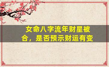 在八字命理中,女命流年财星被合是否预示财运变化,需结合具体命局和合化关系综合分析。以下是关键要点: