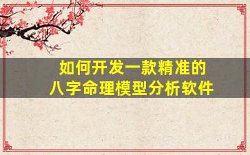 开发一款精准的八字命理模型分析软件需要结合传统文化命理学、现代算法设计和用户体验思维。以下是分步骤的详细指南: