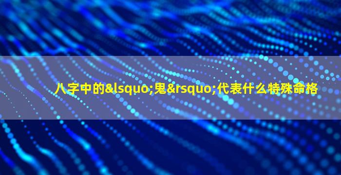 在八字命理中,“鬼”通常与“官杀”(正官、七杀)相关,尤其当七杀(偏官)无制或为忌神时,可能被民间称为“鬼”或“鬼煞”。以下是几种与“鬼”相关的特殊命格及其含义:
