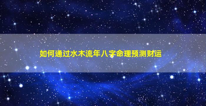 通过水木流年八字命理预测财运,需结合五行生克、十神定位、大运流年等核心理论。以下是具体方法: