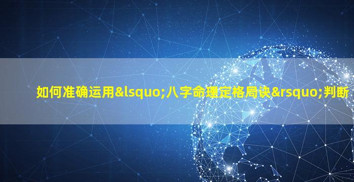 运用“八字命理定格局诀”判断命局层次,需结合五行生克、十神配置、用神强弱及全局气势综合分析。以下是系统化的步骤和要点: