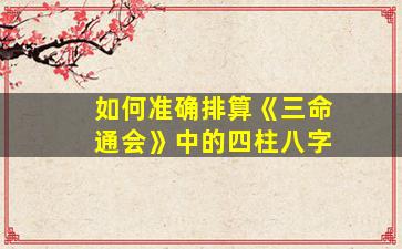 排算《三命通会》中的四柱八字(即生辰八字)需要严格遵循传统命理学的规则,结合农历、干支、节气等要素进行推算。以下是详细步骤和注意事项: