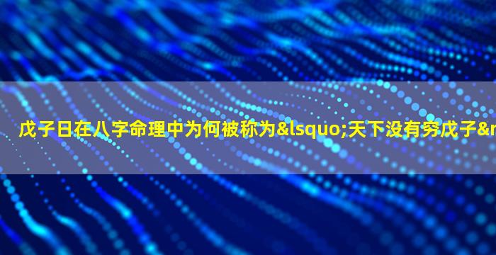 在八字命理中,“天下没有穷戊子”是一句流传甚广的俗语,指的是戊子日柱出生的人往往生活富足,不易陷入极端贫困。这一说法主要基于以下命理学原理: