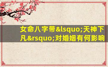 在传统八字命理中,并没有“天神下凡”这一标准术语,可能是民间或网络上的非正规说法。若从命理角度探讨特殊命格对婚姻的影响,需结合具体八字结构和神煞体系分析。以下是几种可能的解读方向,供参考: