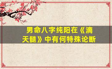 在《滴天髓》中,虽未直接使用“纯阳八字”这一术语,但其中关于阴阳平衡的论述可间接应用于男命纯阳(八字四柱天干地支皆属阳)的分析。以下是相关核心观点及传统命理的延伸解读: