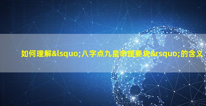 关于“八字点九星命理要块”这一表述,目前并未在传统命理学典籍或主流学术体系中发现明确记载,可能是现代网络或民间术数中的创新术语,或对传统概念的重新组合。以下从专业角度进行解析,并提供可能的理解方向: