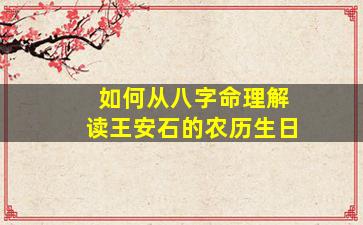 要从八字命理角度解读王安石的农历生日,首先需要明确其准确的出生时间(年、月、日、时),并排布对应的四柱八字,再结合命理理论分析其格局与运势。以下是具体步骤和示例分析: