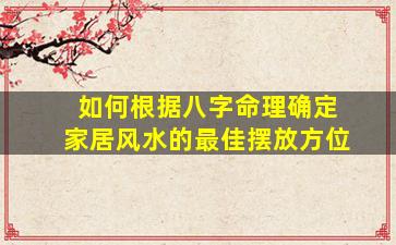 根据八字命理确定家居风水的最佳摆放方位,需结合个人生辰八字的五行喜忌、命局强弱以及风水学中的方位五行属性,进行综合调整。以下是具体步骤和方法: