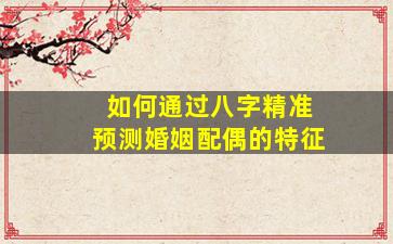 通过八字(四柱命理)预测婚姻配偶的特征,是传统命理学中的重要内容。其核心在于分析命局中的配偶星(男看财星,女看官杀)、配偶宫(日支)以及其他相关组合。以下是系统化的分析方法,供参考: