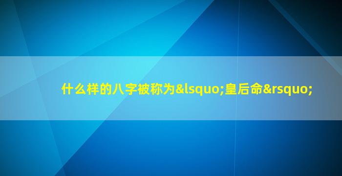 在中国传统命理学中,“皇后命”是一种对女性富贵显赫命运的比喻性说法,通常指八字格局中带有贵气、福气,且婚姻、事业、社会地位等方面极为优越的命局。虽然命理学的解释因流派而异,但一般认为以下特征的八字可能被称为“皇后命”: