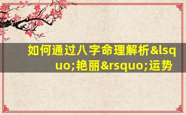 通过八字命理解析“艳丽”运势,需结合十神、五行、神煞等要素综合分析,重点关注外貌气质、情感魅力和人际缘分。以下是具体解析方法: