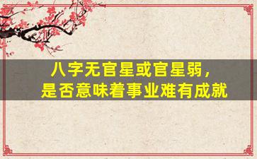 关于八字中“无官星或官星弱是否意味着事业难有成就”的问题,需要从命理学的逻辑和现实角度综合分析: