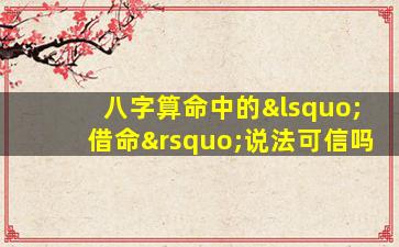 关于八字算命中的“借命”说法,是否可信需要从传统文化、命理学的逻辑框架以及现代科学视角综合分析,以下是一些关键点供参考: