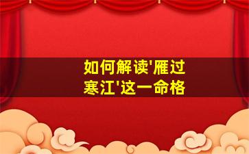 “雁过寒江”作为命理术语,常出现在紫微斗数或传统八字命理中,其意象源于自然景象的抽象化,带有孤寂、变迁与坚韧的隐喻。以下从多个维度进行解读: