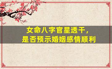 在八字命理中,女命的官星代表丈夫或感情运势,官星透干(即出现在天干)确实能反映一定的婚姻信息,但需结合全局综合分析,不可单凭一点定论。以下是具体解析: