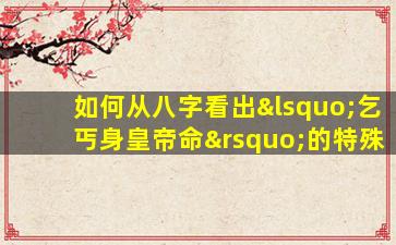 在八字命理中,“乞丐身皇帝命”是一种看似矛盾却暗藏贵气的特殊命格,通常指命主出身寒微或早年困顿(乞丐身),但命局中潜藏大富贵之象,中晚年能逆袭至高位(皇帝命)。这种命格的判断需结合以下核心要点: