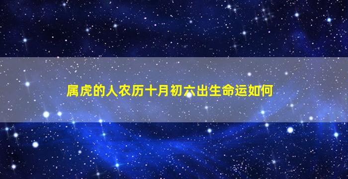 在中国传统命理学中,一个人的命运通常通过八字(出生年、月、日、时的天干地支)来分析,而非仅凭生肖和日期。不过,根据你的问题,我们可以从生肖属虎+农历十月初六的角度提供一些传统文化中的参考,但需注意这属于民俗范畴,不可全信,更多是娱乐参考。