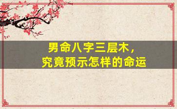 在八字命理学中,"三层木"通常指天干地支中木元素出现三次,形成木气旺盛的格局。这种配置对男性命运的影响需结合八字整体结构(如五行平衡、十神关系、大运流年等)综合分析,以下为常见解读方向: