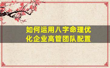 运用八字命理优化企业高管团队配置,是一种将传统命理学与现代管理学结合的创新尝试。其核心在于通过分析个人命局中的五行能量、十神组合及运势起伏,评估高管的性格特质、决策风格与发展潜力,从而在团队中实现优势互补。以下是具体方法和注意事项:
